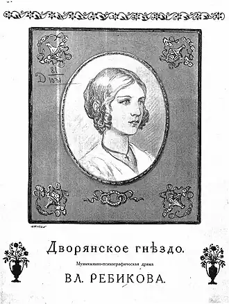 - Ребиков В. И. Дворянское гнездо: музыкально-психографическая драма в 4-х актах и 5-ти карт.: по повести И. С. Тургенева. Соч. 55: для голосовъ с ф.-п. — М.: Юрг., 1917. — 168 с.