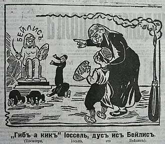 В феврале 1911 года Государственная дума впервые начала обсуждение законопроекта об отмене ограничений в отношении евреев и в первую очередь об отмене черты оседлости[44], одновременно рассматривался законопроект о введении земства в Западном крае, по которому евреи не имели избирательных прав. Борьба вокруг вопроса о еврейском равноправии была в этот момент чрезвычайно острой, и ритуальная версия убийства Ющинского стала ключевым аргументом в антисемитских публикациях[1][45][46][47][25][48].