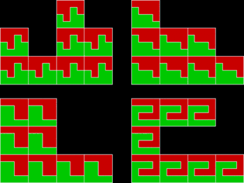 Если полимино квадрируемо или может замостить прямоугольник, то оно будет делящейся плиткой, поскольку прямоугольником можно замостить квадрат (который сам по себе является частным случаем прямоугольника). Это легко можно видеть в элементах октамино, состоящих из восьми квадратов. Две копии некоторых элементов октамино заполняют квадрат, поэтому эти элементы также являются делящимися плитками rep-16.