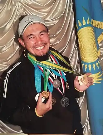 - ↑ Пять штук баксов заработали борцы из Алматинской области. www.caravan.kz. Дата обращения: 4 сентября 2022. Архивировано 4 сентября 2022 года.