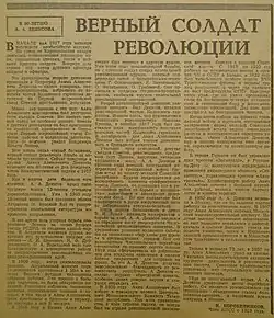 - 1 2 3 4 5 6 7 8 9 10 11 Коробейников И. И. Верный солдат революции. К 80-летию А. А. Денисова. — Газета «Советская Татария». — 1965. — № 216 (14024) (12 сентября). — С. 2. — 4 с.