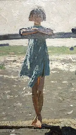 Искусствовед Владимир Лапшин писал, что действие полотна происходит на деревянных мостках, возвышающихся над рекой (а не над озером, как у Круглого). Он отмечал, что у всех пяти босоногих девочек, облокотившихся на перила и расположившихся вдоль них цепочкой, лица скрыты тенью, так как они стоят против солнечного света. Их позы и жесты передают мечтательность, настороженность и раздумье[3].