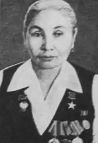 Указом Президиума Верховного Совета СССР от 5 апреля 1971 года «за выдающиеся успехи в досрочном выполнении заданий пятилетнего плана и большой творческий вклад в развитие производства тканей, трикотажа, обуви, швейных изделий и другой продукции лёгкой промышленности» удостоена звания Героя Социалистического Труда с вручением ордена Ленина и золотой медали «Серп и Молот»[1].