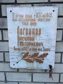 Дом, где жил Василий Григорьевич Логвинов[25], и памятная доска возле него.
