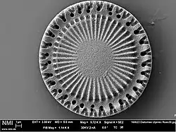 Диатомит — рыхлые или сцементированные кремнистые отложения, осадочная горная порода белого, светло-серого или желтоватого цвета, состоящая более чем на 50 % из панцирей диатомей[1][2].