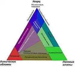В российский геологии принято название «классификационный треугольник». Гацци и Дикинсон выделяли шесть видов песчаников: