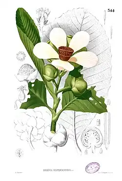- ↑ In: Species Plantarum 1: 535. 1753. Name - Dillenia L. Tropicos. Saint Louis, Missouri: Missouri Botanical Garden. — «Type Specimens: Dillenia indica». Дата обращения: 20 февраля 2010. Архивировано 4 мая 2012 года.