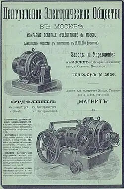 12 мая 1897 года на базе бельгийского акционерного общества был основан завод, который поначалу именовался «Центральное электрическое общество в Москве»[1].