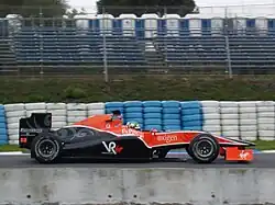 Грасси управляет болидом Virgin в ходе предсезонных тестов на трассе Херес.
