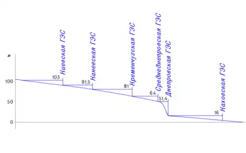 Каховскую ГЭС построили второй — в 1950—1956 годах, за ней — Кременчугскую — в 1954—1960, Днепродзержинскую (Среднеднепровскую) — в 1956—1964, Киевскую — в 1960—1968, и в 1964—1975 годах Каневская ГЭС завершила Днепровский каскад.