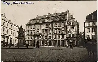 Известно, что в конце XVIII века ратман Иоганн Генрих Холландер приобрёл участок земли рядом с ратушей для строительства своей городской резиденции. Возможно, дом был возведён по проекту крупнейшего рижского архитектора того времени Кристофа Хаберланда, это было высокое четырёхэтажное здание с мезонином и высокой мансардной крышей (в стиле распространенного в Риге «бюргерского классицизма»).