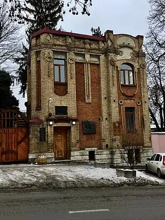 Кирпичное двухэтажное здание в стиле модерн построено в 1907 году по проекту собственника областного архитектора Павла Павловича Шмидта[2].