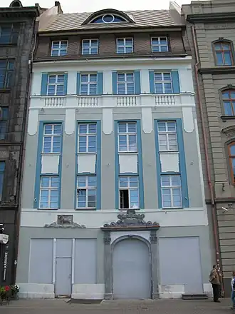 Жилой дом, более известный в рижском туристическом дискурсе как «Дом с подковой», был построен в период Шведской Ливонии. На фасадном рельефе присутствует изображение льва, который указывает на существование Львиной аптеки (одной из наиболее известных аптек Риги), основателем которой был немецкий врач и биолог из Любека Беньямин Фишер, который обосновался в Риге в 1653 году. Его старший брат Иоганн Фишер занимал важную должность ливонского суперинтенданта и имел возможность оказать брату необходимую протекцию. Именно его аптека, которая изначально находилась на улице Шкюню, получила статус Королевской, что позволило ей приобрести популярность в условиях ожесточённой конкуренции с другими аптекарскими предприятиями города. Аптекарь Фишер получил концессию из рук Карла XI, чем воспользовался в рекламных целях для привлечения клиентов. В итоге Фишер основал династию рижских фармацевтов, среди которых наибольшей известностью отличался его сын Иоганн Бернандт Фишер, который лично консультировал Анну Иоанновну, а затем был приглашён в Санкт-Петербург, где оказывал услуги знатным представителям императорского двора и открыл аптеку. После смерти Анны и провозглашения Бирона регентом Фишер оказывал медицинскую помощь императору-ребёнку Иоанну Антоновичу, но после переворота, в результате которого к власти пришла Елизавета Петровна, И. Б. Фишер принял решение вернуться в Ригу и заняться фармацевтическими делами в родном городе, занявшись написанием работ по развитию сельскохозяйственного комплекса Лифляндии.