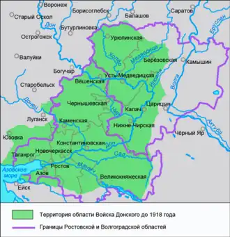 - ↑ Территория распространения говоров Донской группы соответствует в общих чертах территории области Войска Донского — административной единицы Российского государства до 1918 года.