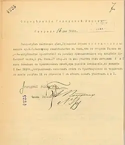 Это кирпичное здание с аркой было построено в начале XX века (относится к 1910 году). Автор проекта — О. Г. Пиотрович. На фасаде дома почти нет пластических элементов, что говорит о смещении эстетических представлений в пользу функциональности. Композиция фасада сооружения, почти лишенная пластических акцентов, интересна своей простотой, свидетельствующей о постепенном изменении эстетических ориентиров в архитектуре, об органичном формировании формального языка функционализма. Плоскость фасадной стены построена на ритмике оконных проемов.[4]