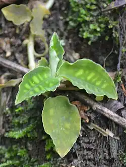 Dossinia marmorataDossinia marmorata, единственный представитель своего рода, обитает исключительно на острове Борнео в низинных и холмистых лесах, на почвах с известняком, покрытых опавшими листьями, мхом или расположенных между камнями и на уступах на высотах до 400 м над уровнем моря. Это миниатюрная или небольшая наземная орхидея, обладающая коротким стеблем и мохнатыми корнями. Растение формирует группы от 3 до 5 листьев у основания, они яйцевидные до широкоэллиптические, мясистые, с 5 до 7 жилками. Верхняя часть листьев окрашена в черно-зеленый цвет, украшенный переливающейся розовой, зеленовато-желтой или золотистой сеткой. Листья имеют разнообразные оттенки от розового до пурпурного снизу[5].