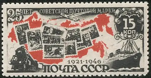 - СССР (1946): «25 лет советской почтовой марки» (ЦФА [АО «Марка»] #1087—1089; Sc #1080—1082)