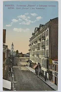 19 февраля 1918 года в ходе акции освобождения Минска белорусскими и польскими войсками от большевиков была совершена попытка арестовать в здании гостиницы советского комиссара Карла Ландера, а также чиновников минского штаба ЧК и Красной армии. Большевики были вынуждены бежать через задний вход и быстро уехать из города. Захват гостиницы стал одним из главных достижений белорусов в белорусско-польской антибольшевистской кампании[4].