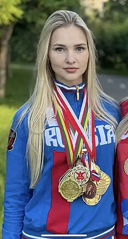 - Чемпионат России: чемпионка (2015 г. — Чехов (Московская область) 2013 г. — Москва; 2012 г. — Дзержинск (Нижегородская область)),