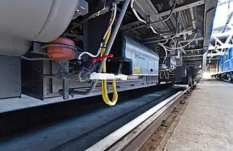 На каждой из тележек промежуточных вагонов установлены по два асинхронных тяговых электродвигателя типа MB-5149-A[12] (производства Mitsubishi) мощностью 150 кВт каждый, что вдвое превышает мощность оригинальных коллекторных двигателей, позволяя использовать в составе прицепные вагоны. За счёт установки тяговых преобразователей, необходимых для работы асинхронных электродвигателей, вагоны издают характерный писк при разгоне и торможении. Управление электроприводом осуществляется через тяговые инверторы Mitsubishi MAP-154-75V256[12], а силовые элементы привода выполнены на IGBT-транзисторах. На одном из моторных вагонов также установлен автоматический тиристорный коммутатор переменного тока. Тяговый привод позволяет осуществлять электродинамическое рекуперативное торможение, а при отсутствии режима рекуперации возможно реостатное торможение за счёт тормозных резисторов[8].