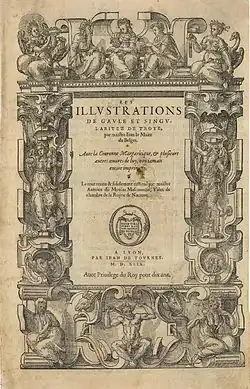 Титульный лист книги «Прославление Галлии и необычайные судьбы Трои» («Les illustrations de Gaule et singularités de Troye», 1509—1513). Лион, 1549 год.