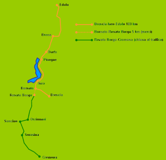 Практические работы по строительству линии были начаты в 1881 году. Первый участок (Брешиа — Изео) протяжённостью 24 км был открыт 21 июня 1885 года.