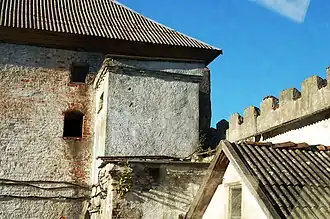 Наиболее древним в замке было западное крыло, уничтоженное сильным взрывом в 1929 году. Оно было построено в середине XIV века. В нём были размещены помещения для совещаний и замковая часовня.
