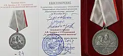 - ↑ Указ Президента Российской Федерации от 30.12.2022 № 980 "О награждении государственными наградами Российской Федерации". Официальный интернет-портал правовой информации (30 декабря 2022). Дата обращения: 3 октября 2023. Архивировано 8 октября 2023 года.