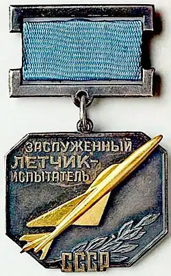 Указ Президиума Верховного Совета СССР от 14 августа 1958 года «Об установлении почётных званий „Заслуженный лётчик-испытатель СССР“ и „Заслуженный штурман-испытатель СССР“»:[2]