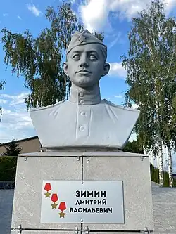 - В 2018 году установлен бюст на Аллее Героев в Никольске (в церемонии открытия принимали участие дочь и внук Д. В. Зимина).