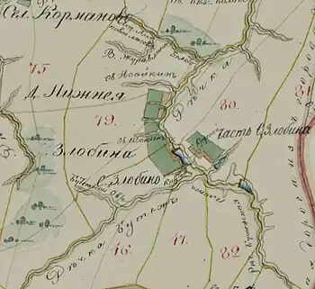 - ↑ Злобино на карте РККА N-36 (Г) 1937 года. Дата обращения: 2 декабря 2017. Архивировано 2 декабря 2017 года.