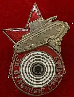- 1 2 3 4 Знак «За отличную стрельбу из танкового оружия». Аllfaler.ru. История наградной фалеристики России. Дата обращения: 21 мая 2012.