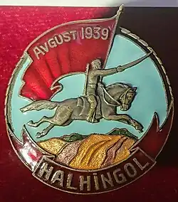 Знак «Участнику боёв у Халхин-Гола» был учреждён Указом Великого Народного Хурала МНР 16 августа 1940[1]. Дата на знаке «Август 1939» означает решающий момент в военном противостоянии.