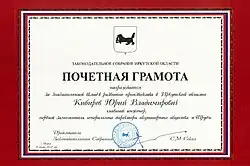 Почётная грамота Законодательного Собрания Иркутской области |