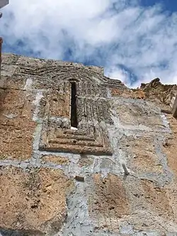 Алтарная часть имела повышение, на котором была установлена преграда. По сторонам апсиды расположены двухъярусные пастофории, соединяющиеся проходами с алтарным пространством. Нижние пастофории освещались выходящими на восточный фасад окнами; внутри под ними расположены консоли-престолы. В верхние, не имеющие окон помещения попадали по приставной лестнице. Единственный вход в храм традиционно для этого региона сделан с юга.[1][3]