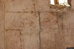 Стены Зругского храма были покрыты фресками, от которых в основном сохранился подготовительный рисунок: в апсиде — фрагменты святительского и апостольского чинов, на южной стене читаются «Распятие», «Жены-мироносицы у Гроба Господня», «Встреча Марии и Елисаветы», отдельные фигуры святых, над входом — «Чудо св. Евстафия Плакиды».[4] Остались на светлых стенах из травертина — лишь красные контуры изображений, но и они представляют большую ценность.