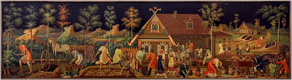 - Жнитво. Баул, 1929. Государственный музей палехского искусства.