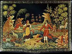 - Пастушки. Портсигар, 1927. Государственный музей палехского искусства.
