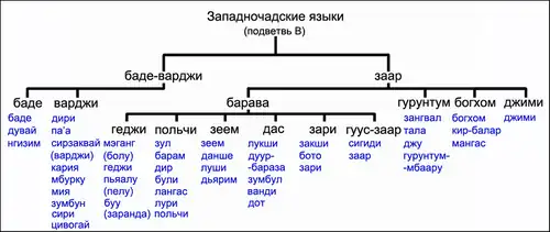 - 1 2 Lewis M. P., Simons G. F., Fennig C. D.: Afro-Asiatic. Chadic. West (англ.). Ethnologue: Languages of the World (19th Edition). Dallas: SIL International (2016). Архивировано 27 ноября 2016 года. (Дата обращения: 2 февраля 2017)