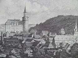 Изначально здесь (с XI века) находилась крепость и все главные сооружения. В XVI веке в ходе радикальной реконструкции бывшая цитадель оказалась перестроена для административных нужд. Это П-образный ансамбль из нескольких фахверковых зданий на каменном фундаменте с декоративными фронтонами. Большинство построек имеют крупные арочные входные двери. За зданием старого окружного суда в западной части крепости находится башня Хексентурм.
