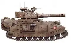 Танк «Леман Русс», в других переводах также известный как Леман Расс, — самый тиражируемый танк военных сил Империума, названный в честь примарха шестого легиона космического десанта, Космических Волков. Танк отличался мощной бронёй (особенно на лобовой части корпуса), высокой огневой мощью, а также довольно высокой мобильностью. Танк очень устойчив, прочен, надёжен и неприхотлив (двигатели Леман Русса были способны работать практически на любом топливе). На базе конструкции этого танка создана целая серия боевых машин.