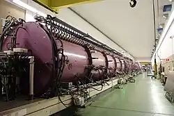 - SIS18 (нем. SchwerIonenSynchrotron) — синхротрон с периметром 216 м, который может ускорить ионы до 90 % от скорости света (что соответствует магнитной жёсткости 18 Тл·м)[3].