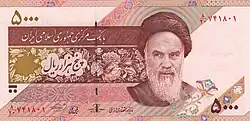 5000 | 154×75 | красный | Иранские революционеры 1979 года | Мавзолей Фатимы Масуме | 1981 |