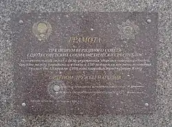 Мемориальная плита, посвящённая награждению Ялты орденом Дружбы народов