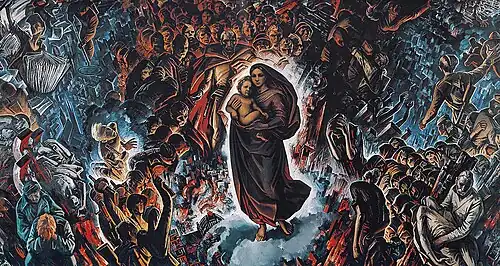Этот же образ в картине «Мадонна Биркенау» М. А. Савицкого[9][8], как и композиция его картины «Партизанская мадонна Минская», повторяющая «Сикстинскую Мадонну»[10][11], иллюстрируют её влияние на советскую живопись.