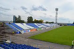 - 1993 год — реконструированы восточная и западная трибуны (путём увеличения посадочных мест), возведена первая боковая (северная трибуна); имевшиеся беговые дорожки вокруг футбольного поля при этом фактически утратили полноценность). Общая вместимость стадиона достигла 12 000 зрителей. Отремонтированы подтрибунные помещения (душевые, раздевалки; их расположение — западная трибуна), кассовые павильоны, обновлено освещение стадиона.