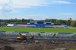 - 2015 год — проведена реконструкция с полным сносом всех имеющихся трибун и возведением на их месте новых из легковозводимых металлических конструкций, общей вместимостью 6248 зрителей (часть западной трибуны не была снесена, там остался технический блок управления подогревом и поливом поля)[3]. Также было возведено новое трёхэтажное административно-бытовое здание, построено два общественных туалета, заменено освещение и табло на стадионе, установлена система видеонаблюдения. Матчи в этом году на главном поле стадиона «КАМАЗ» не проводились (ФК «КАМАЗ» играл домашние игры в Нижнекамске и Казани), при этом строительные работы, начавшиеся из-за задержки проектной документации не 10 января, а 1 апреля[2], были завершены ещё в сентябре, однако с открытием стадиона и сертификацией его РФС[4] возникла задержка из-за оформления документации[5][6], и открытие стадиона после реконструкции состоялось 12 марта 2016 года матчем «КАМАЗа» и «СКА-Энергии»[7].