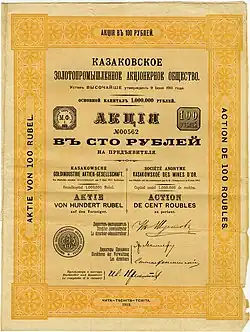 Казаковское золотопромышленное акционерное общество с основным капиталом в 1 000 000 рублей, устав которого Высочайше утвержден 11 июня 1911 г., было зарегистрировано в Чите в 1912 г.[1] Предприятия общества занимались освоением Казаковского месторождения в окрестностях села Казаковский Промысел в северо-восточной части Балейского района Забайкальского края России, в настоящее время являющегося центром сельского поселения «Казаковское».