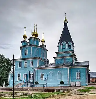 Церковь двухпрестольная: главный придел освящён в честь Казанской иконы Божией Матери (празднуется 4 ноября), боковой придел освящён во имя Святого Николая Мир Ликийского Чудотворца (празднуется 19 декабря).