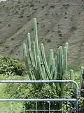 Стебель — колонновидный древовидный, высотой до 5-6 метров; побеги многочисленные. Цвет от светло- до тёмно-зелёного, чаще всего — голубовато-зелёные; молодые побеги покрыты налётом. Взрослые растения имеют 6-8 широких и округлых рёбер с поперечными углублениями у ареол и 3-7 тёмно-жёлтых или коричневых колючек длиной до 2 (обычно — 0,5-1) см. Цветки — белые, трубчатой формы, до 22-23 см длиной, ароматные; цветочная трубка — с чёрными волосками.